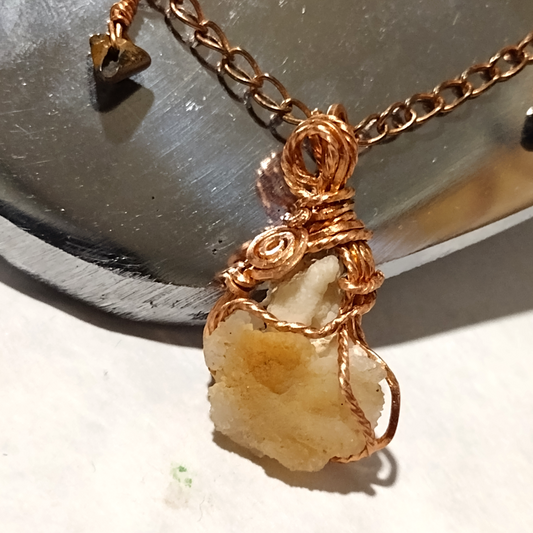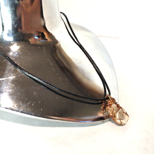 Crazy Wire Work Jewelry, Raw Chalcedony Rose Copper Pendant Black Leather Necklace