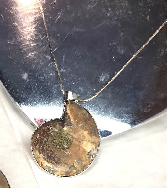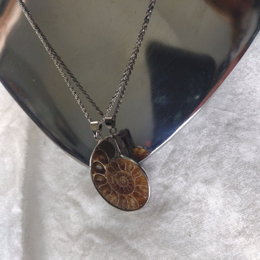 Fossil Jewelry, Silver Plated Polished Ammonite Fossil Necklace