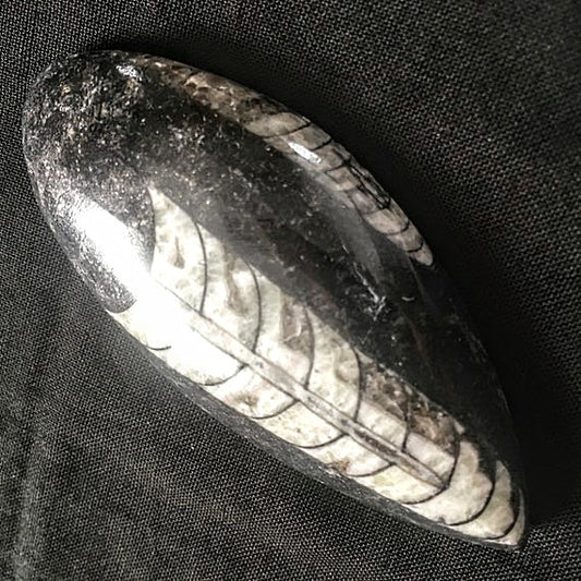 Fossils, Polished Medium Palm-Sized Orthocera Natural Stone Display, Worry Stone Paper Weight.