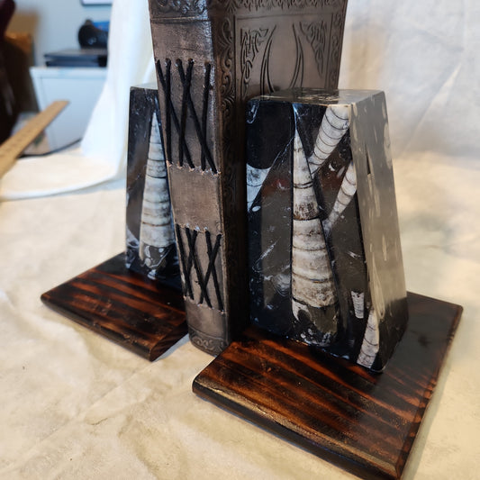 Fossilized Orthoceras Stone Bookends Made to Order, Carved and Polished Decorative Slate Bookends