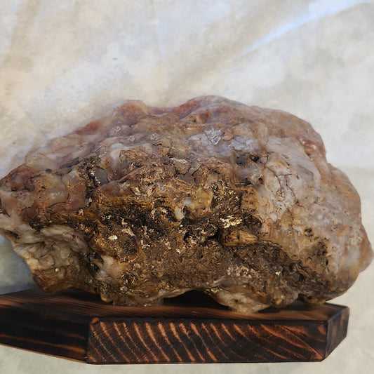 Nevada Chalcedony Coral Jasper Landscape Rock Art Display Burned Wood Base