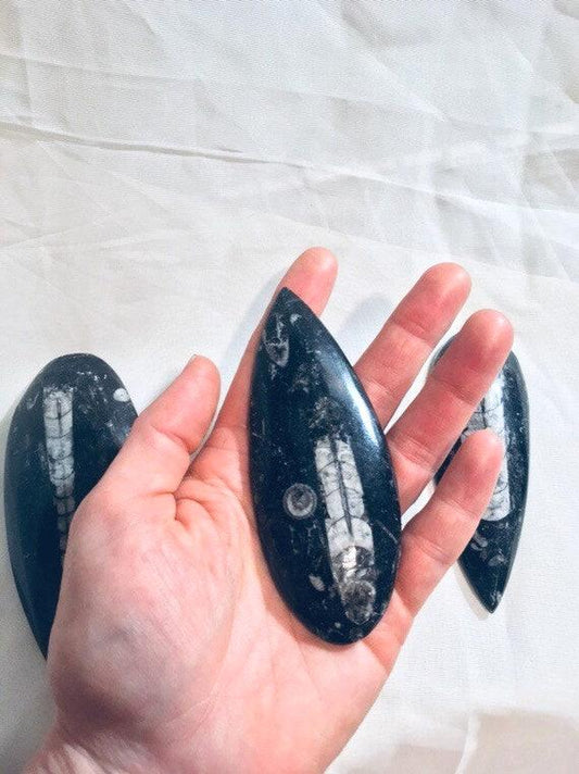 Fossils, Polished Medium Palm-Sized Orthocera Natural Stones, Worry Stone, Desk Top Paper Weight