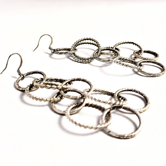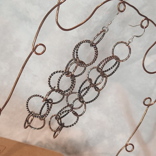 Silver Copper Brushed Antiqued/Blackened Chandalier Earrings 3" Medium Drop, Rustic-Glam Circle Chain Jewelry