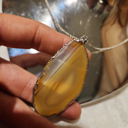 Agate Sliced Jewelry, Silver Dipped Natural Stone Pendent Necklace