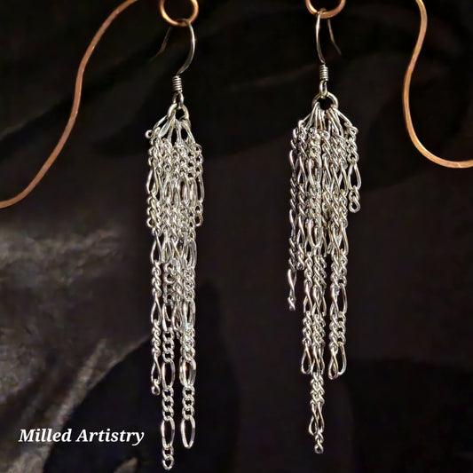 Chain Jewelry, Figaro Silver Feather Tassel Chain Earrings