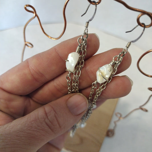 Beaded Mother of Pearl Silver Chandelier Earrings