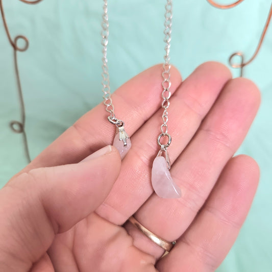 Beaded Silver p. Long Drop Rose Quartz Earrings