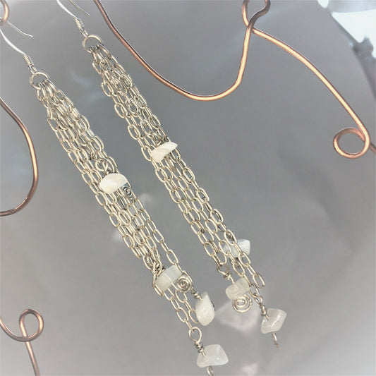 Beaded Starry Night Moonstone Silver Chandelier Earrings